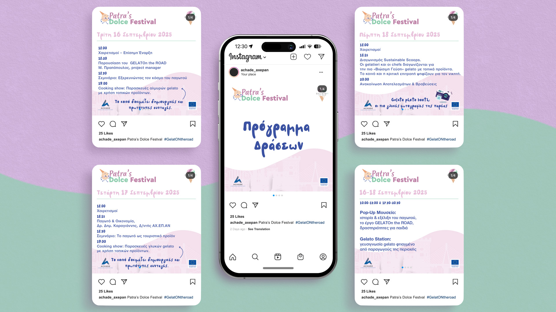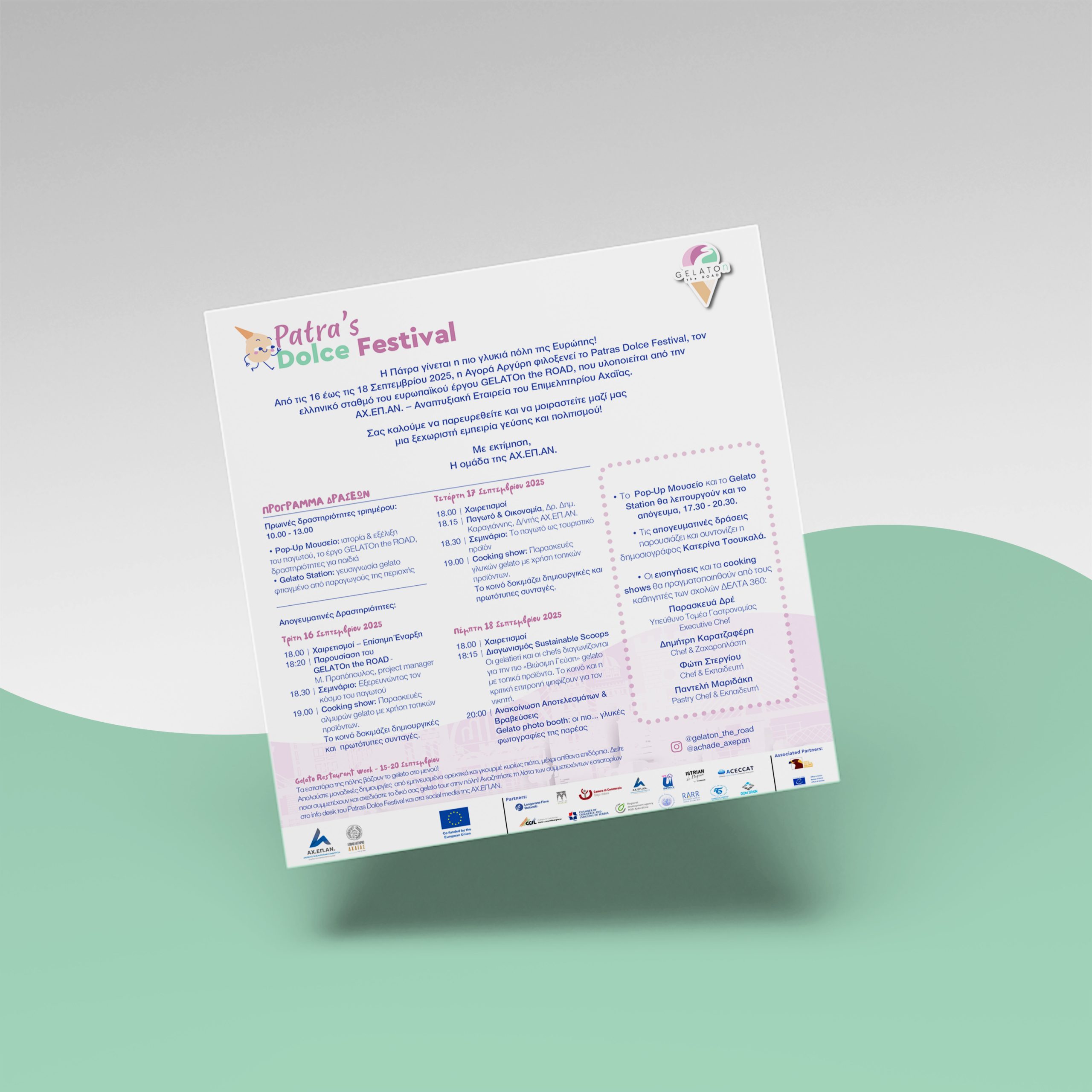 In September 2025, Connections curated and delivered the full general organization, production, coordination, creative direction and communication strategy for the Patras Dolce Festival, the Greek station of the European project GELATOn the ROAD (Creative Europe 2021–2027).